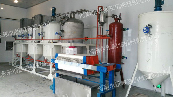 本機(jī)組成套組合,自備熱源,電器控制,重量輕,耗電省??蛻艋丶抑恍杞油娫醇白詠硭?2米高水箱也行),準(zhǔn)備少許煤或木柴、燒堿、磷酸和白土即可。本機(jī)組不需專用廠房,不需專用基礎(chǔ),室內(nèi)、室外都可使用。小型精煉油設(shè)備適用于各種動、植物油的精煉,毛油經(jīng)過堿煉、脫膠、脫酸、脫色、脫臭到成品,油質(zhì)可達(dá)到國家二級油(原高級烹調(diào)油)。該設(shè)備投資小,見效快,結(jié)構(gòu)緊湊,布局美觀。